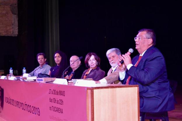 Ao lado dos ex-ministros Fernando Haddad e Celso Amorim, governador do Maranhão fala na principal mesa do 5º Salão do Livro PolíticoSob o tema “Governo Bolsonaro – Como o Brasil Pode Superar Essa Encruzilhada?”, a mesa com a presença do governador maranhense incluiu os ex-ministros Fernando Haddad e Celso Amorim, do PT, além da deputada estadual Erica Malunguinho (PSOL-SP). O discurso de Dino, de 25 minutos, foi um dos mais aplaudidos pelo público de cerca de 800 pessoas que lotaram o Tuca (Teatro da Pontifícia Universidade Católica de São Paulo), na região de Perdizes.