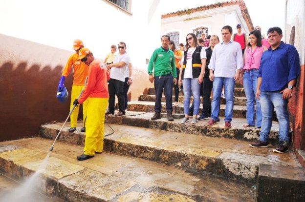 Todas as praças, calçadas e pontos turísticos da região do Centro Histórico devem receber algum tipo de serviço. Em um dos pontos turísticos mais visitados da Praia Grande, a escadaria do Beco Catarina Mina, o prefeito acompanhou o trabalho meticuloso de limpeza que utiliza tecnologia moderna para remover sujeiras de monumentos tombados pela Unesco. A limpeza hidrotécnica está sendo realizada com o acompanhamento da Secretaria Municipal de Urbanismo e Habitação (Semurh).