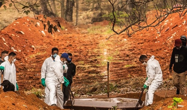 O país tem a maior taxa de contágio do mundo e deve ultrapassar a Rússia em número de casos nos próximos dias, apontam as projeções mais recentes de especialistas. Somente na semana passada, o Brasil respondeu por 13% de todos os novos casos de contágio no mundo. Ao contrário de países vizinhos como a Venezuela, Uruguai e Argentina, o o governo assiste passivamente o avanço implacável da pandemia em território nacional. De acordo com estudo encomendado pela Organização Pan-Americana da Saúde (OPAS), o país terá cerca de 90 mil mortes por coronavírus até agosto.