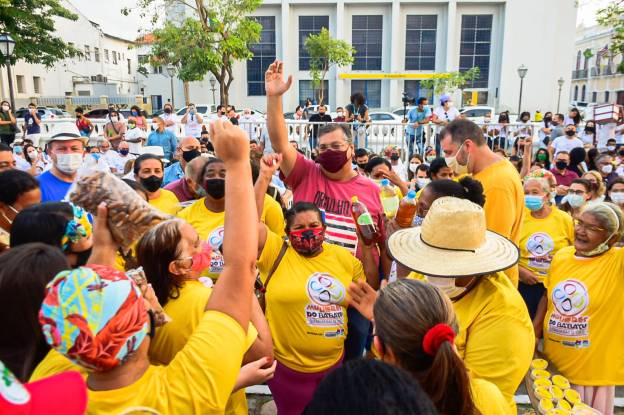 O Governo do Maranhão realizou, neste sábado (25), em frente ao Palácio dos Leões, uma feira em comemoração ao Dia Estadual das Quebradeiras de Coco Babaçu. O evento, com atividades culturais e comércio de produtos das palmeiras, contou com a presença do governador Flavio Dino, do secretário Rodrigo Lago (Agricultura Familiar), e da cozinheira Paola Carosella, que esteve em São Luís para participar de inauguração do IEMA Gastronomia.