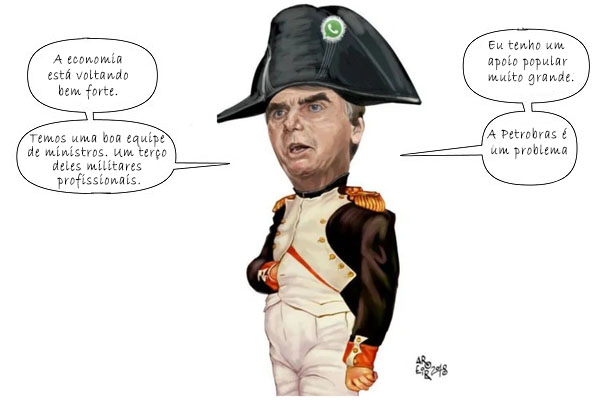 Bolsonaro respondeu: “Eu também tenho um apoio popular muito grande. Temos uma boa equipe de ministros. Não aceitei indicação de ninguém. Fui eu que botei todo mundo. Prestigiei as Forças Armadas. Um terço dos ministros [é de] militares profissionais. Não é fácil. Fazer as coisas certas é mais difícil”.