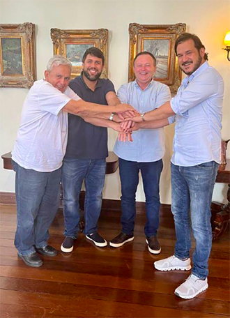 “Recebi o Antônio de Rueda, vice-presidente nacional do União Brasil; o prefeito da cidade de Arame, Pedro Fernandes; e o deputado federal Pedro Lucas Fernandes. Ótimo momento para conversarmos sobre a política regional e, claro, avaliarmos o cenário nacional. Vamos em frente!”, salientou Brandão.