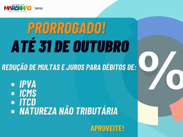 A Secretaria de Fazenda do Maranhão, por meio da Resolução Administrativa 21/2024, prorrogou para até 31 de outubro o prazo para contribuintes aproveitarem a redução de multas e juros dos débitos de IPVA, ICMS, ITCD e de Natureza Não Tributária.