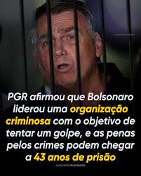 O ex-presidente e seus cúmplices são acusados pela PGR de formar organização criminosa armada, de golpe de Estado, de tentativa de abolição do Estado Democrático de Direito, de dano qualificado pela violência, de grave ameaça contra patrimônio da União e de deterioração de patrimônio tombado.