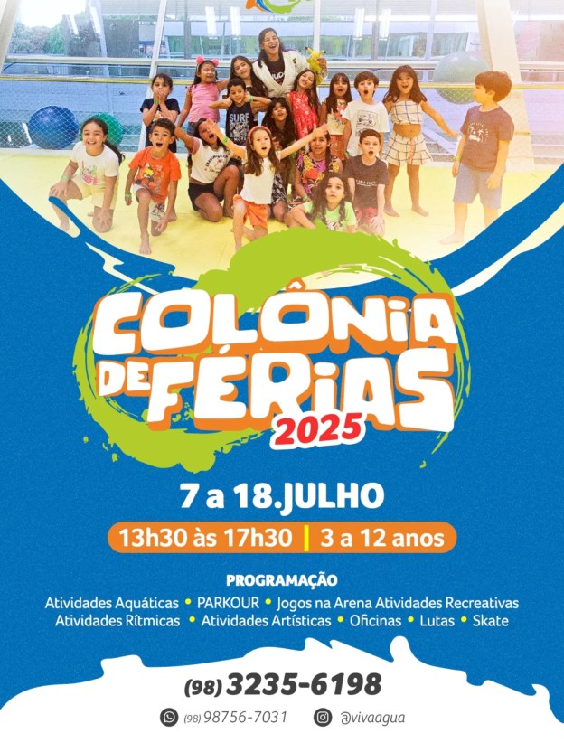 A academia Viva Água oferece mais uma edição da sua tradicional Colônia de Férias para criançada de São Luís e turistas durante o período de recesso escolar.